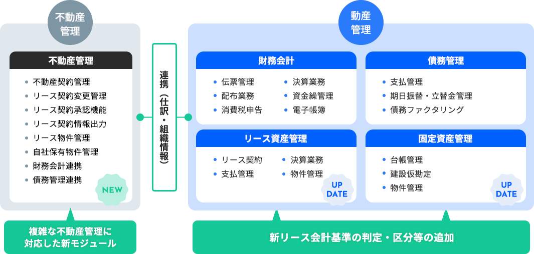 動産リース管理・不動産リース管理は、会計システムの種類を問わず導入可能です。