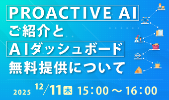 - このたび、「PROACTIVE AI」および期間限定で無料提供する「PROACTIVE AIダッシュボード」についてご紹介するオンラインセミナーを開催いたします。