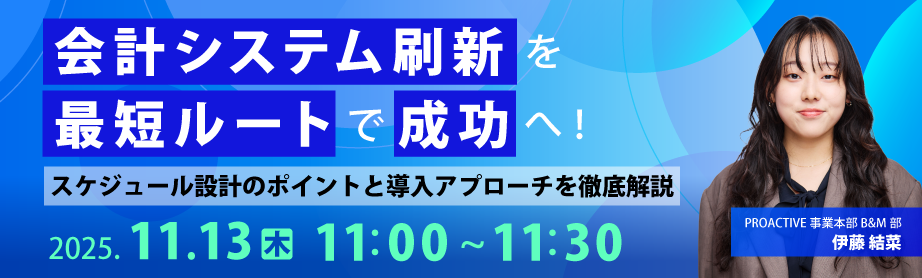 | 概要 | 会計システムの刷新をご検討中の企業様・ご担当者様の中には、 本ウェビナーでは、そうした“本格始動前”の段階で抱えがちな課題に対し、 ・ 導入時期が迫っている(2027年頃までを目安としている) といった企業様にとって、 |