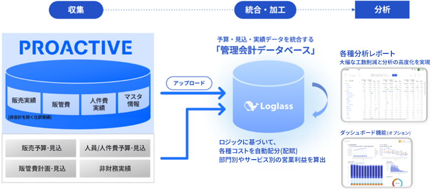 「PROACTIVE」と株式会社ログラスのクラウド経営管理システム「Loglass」を連携させることで、企業の実績データと計画データを一元管理。