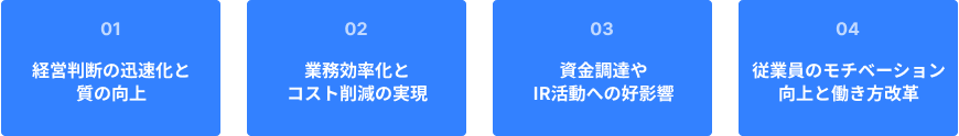企業価値の向上 | 投資家や金融機関からの信頼性が高まる |