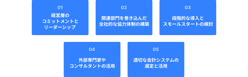 決算業務の早期化プロジェクトは、その影響範囲が広く、多くの関係者を巻き込むため、単に手法を知っているだけでは成功しません。ここでは、プロジェクトを円滑に進め、確実に成果を出すために押さえておくべき重要なポイントを解説します。