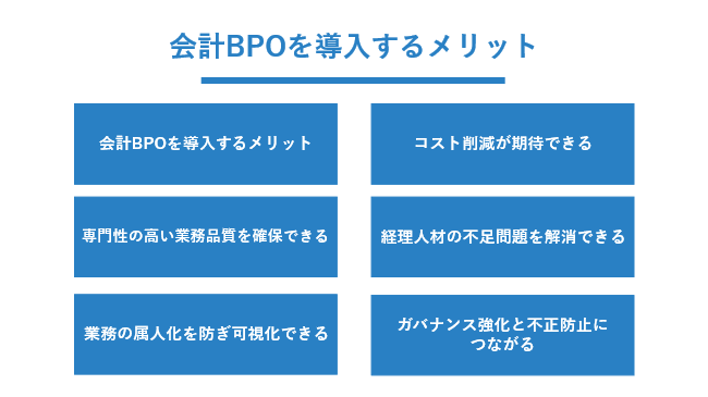 会計BPOを導入することで、企業は様々なメリットを享受できます。ここでは主なメリットを6つ紹介します。