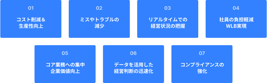 経理業務の効率化には、企業全体に波及する多くのメリットがあります。ここでは、主要な7つのメリットについて詳しく解説します。