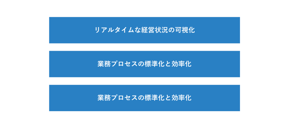 ERPの導入は大きな投資を伴いますが、それに見合うだけのメリットが期待できます。特に、企業が成長していく過程で直面する多くの課題を解決する力を持っています。ここでは、代表的な3つのメリットを紹介します。