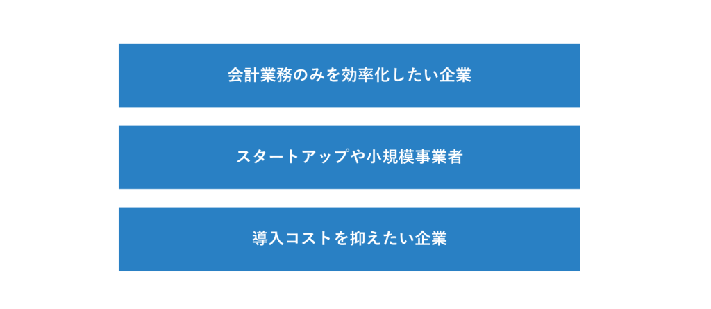 自社の状況によっては、高機能なERPよりも、シンプルで使いやすい会計ソフトの方が適している場合があります。以下のような特徴を持つ企業は、まずは会計ソフトの導入・活用を検討するのが良いでしょう。
