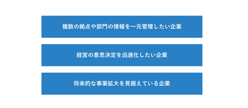 | 導入効果 | バックオフィス業務の効率化 | 経営の意思決定支援、ガバナンス強化 |
