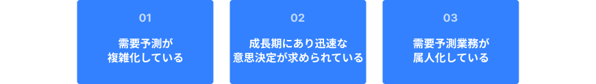 需要予測プロセスを標準化することで、担当者が変わっても一定の品質を保った予測が可能になります。これにより属人性が排除され、企業全体の競争力強化につながります。