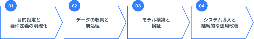 需要予測モデルを効果的に活用するためには、導入前の準備から運用後の改善まで、段階的かつ計画的なプロセスが重要です。ここでは、導入を成功させるための基本的なステップを4つに分けて解説します。
