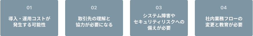 請求書電子化には多くのメリットがありますが、導入にあたって考慮すべきデメリットや課題も存在します。これらを事前に理解し、適切な対策を講じることが成功の鍵となります。