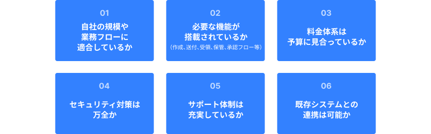 請求書電子化を成功させるためには、自社に合ったシステムを選ぶことが非常に重要です。数多くのシステムが存在する中で、どのような点に注目して選定すべきか、具体的なポイントを解説します。