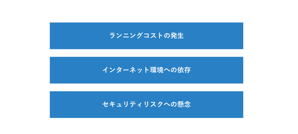 クラウドサービスは、初期費用を抑えられる反面、月額や年額での利用料(ランニングコスト)が発生し続けます。利用する機能やユーザー数によって料金プランが異なるため、自社の規模や必要な機能を見極め、コストパフォーマンスを慎重に比較検討する必要があります。