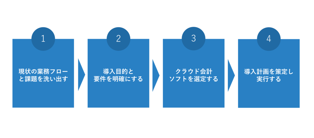 クラウドシステムの導入を成功させるためには、計画的にステップを踏んで進めることが重要です。ここでは、具体的な4つの手順に分けて解説します。