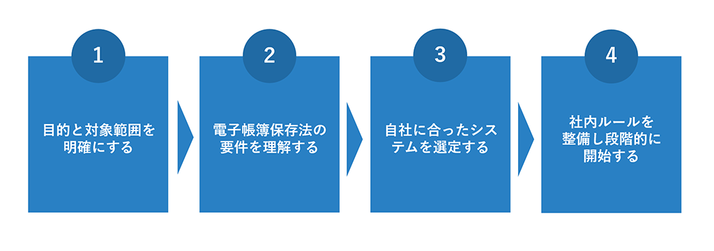 経理のペーパーレス化を成功させるためには、計画的かつ段階的に進めることが重要です。ここでは、具体的な4つのステップを紹介します。